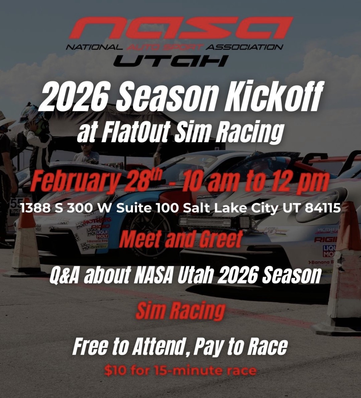 Join us February 28th from 10am-Noon FlatOut Sim Racing 1388s 300w Suite 100, SLC Ut… Read More »2/28 Season Kickoff Meet & Greet - 2026 Dates Confirmed! 2/28 Season Kickoff Meet and Greet